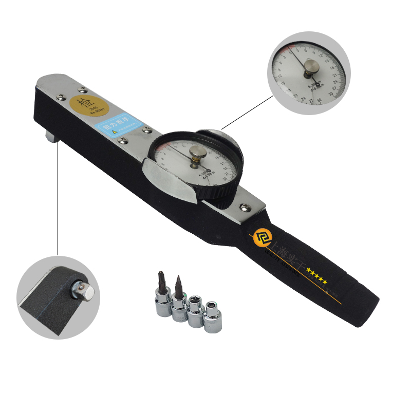 表盤扭力扳手主要用于對螺紋緊固力矩的檢測。 指示表盤扭力扳手帶有公制Nm和英制Ibf.in雙刻度顯示。范圍從0Nm-2800Nm,可測量范圍廣。扳手頭部為固定式,可接套筒使用。 表盤扭力扳手主要特點: 可換頭表盤扭力扳手主要用于對螺紋緊固力矩的檢測。